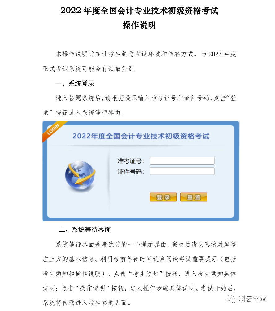 2022年度全国会计专业技术初级资格考试操作说明